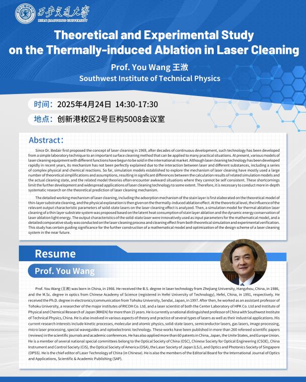 西南技术物理研究所王浟教授讲座通知