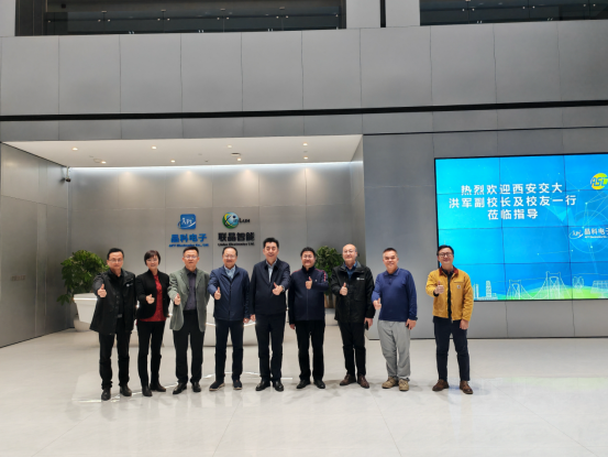 参观结束后,洪军副校长与广州敏嘉董事长赵虎、晶科电子/联晶智能/芯聚能/芯粤能董事长肖国伟、晶科电子/联晶智能总裁侯宇、南砂晶圆董事长王垚浩、嘉铭智能总经理劳永革、精鹰智能总经理强鸿枭、交大源高新技术发展中心李秋琼等校友座谈,就学校与校友企业之间的人才培养模式创新、人才输送、科研项目合作、资源共享与平台搭建等方面进行了深入交流和探讨。