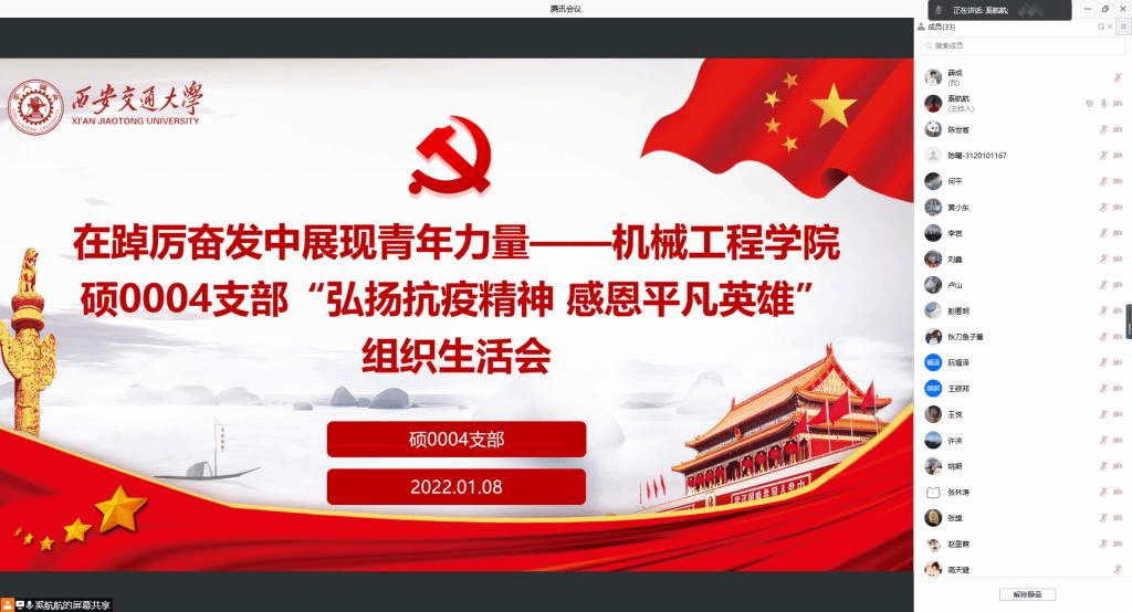 岁末年初,一场突如其来、态势凶猛的新冠肺炎疫情阴影笼罩三秦大地。面对疫情,西安人民站在一起、心手相连、同舟共济、共同坚守、全力应对。为致敬这些奋战一线可爱可敬的无名英雄们,同时发扬我校学子“饮水思源”的优良传统,1月8日,36365线路检测中心no1硕0004党团支部召开线上组织生活会,弘扬抗疫精神,感恩平凡英雄,号召全体同学以青春践行使命担当。